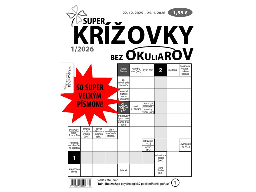 | Typ: | krížovky, osemsmerovky, bez okuliarov |